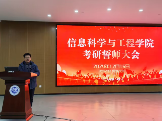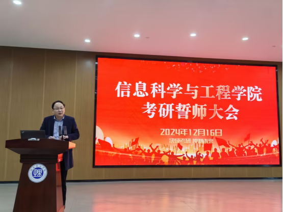 周峰作为班主任代表发言,他以亲身经历和感受,鼓励同学们在考研的道路上要坚持不懈,沉着冷静,发挥出自己的最佳水平。