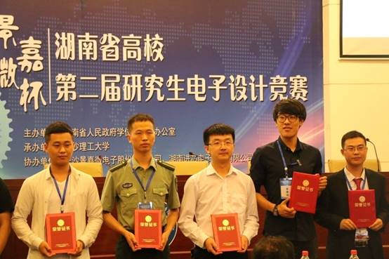 6月2日,由湖南省学位办主办、长沙理工大学承办、长沙景嘉微电子股份有限公司和湖南进芯电子科技有限公司协办的湖南省第二届研究生电子设计大赛在长沙理工大学落下帷幕。公司组织的6支代表队(信息公司5支,机械公司1支)与国防科技大学、中南大学、湖南大学等14所高校的83支队伍同场竞技。经过全体人员的共同努力和顽强拼搏,最终获得一等奖和三等奖各1项,实现了研究生电子设计竞赛一等奖“零”的突破,童耀南和陈松老师荣获优秀指导老师。