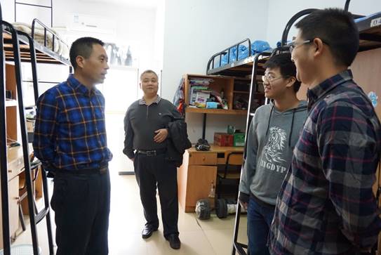 为深入贯彻落实校领导班子成员深入基层开展“七进两联系”工作,10月9日上午,副董事长张国云在信息公司党总支书记甘向阳、16级辅导员荀仕杰、16级电信三班班主任朱鹏的陪同下,走进信息公司员工寝室,看望考研学子刘旭。