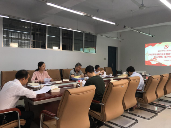 信息公司总支成员9月23日上午8:00在公司325会议室集中学习习近平总书记关于湖南工作的重要指示批示精神。院总支副书记徐丹主持。