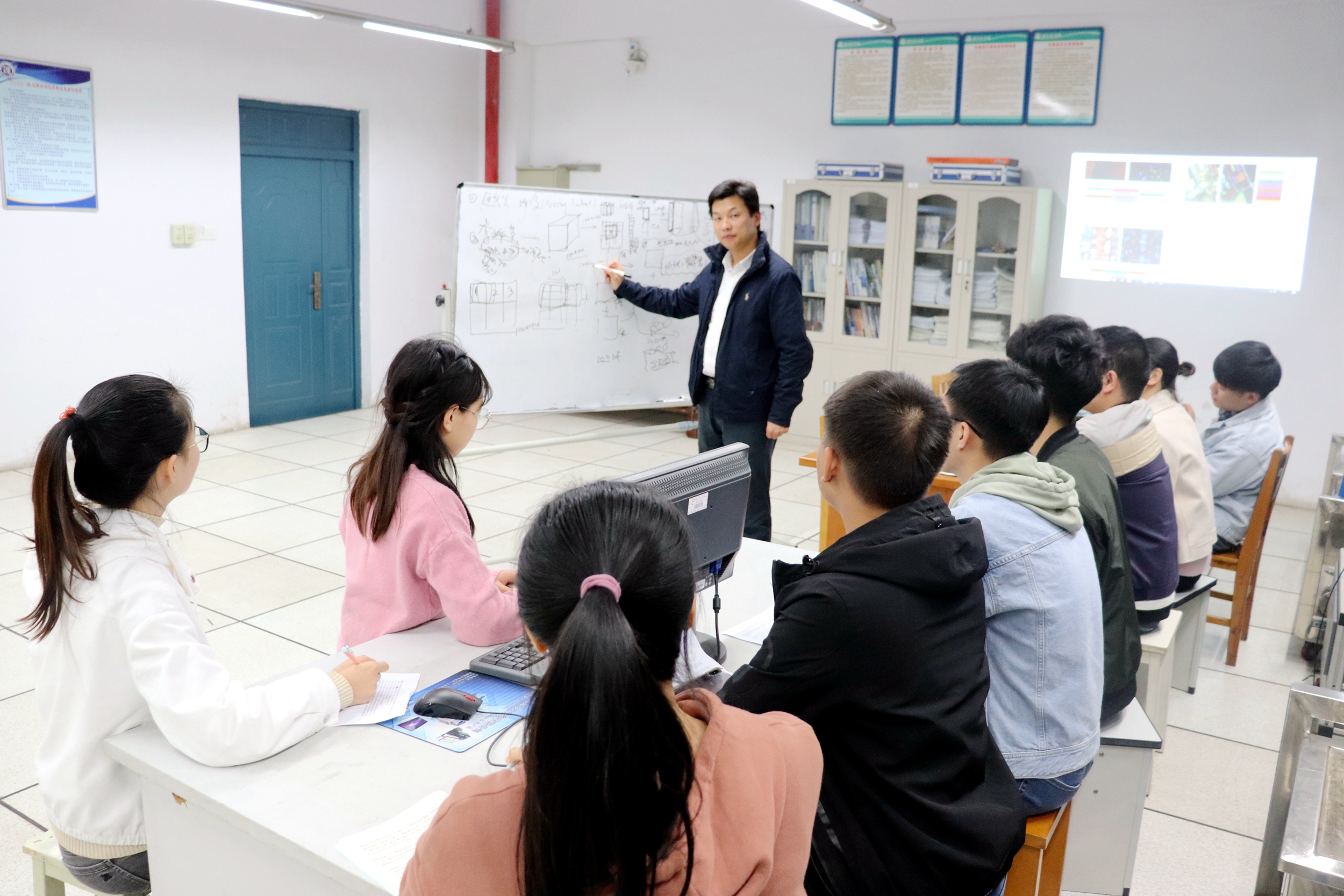 涂兵在实验室给员工讲解项目方案