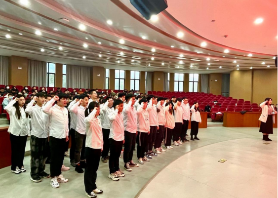 会议在《中华人民共和国国歌》中开始,王学鹏宣读了预备党员及正式党员的批复,随后由刘照馨领誓,全体新党员庄严的举起右拳向党旗宣誓,对党组织做出郑重承诺。