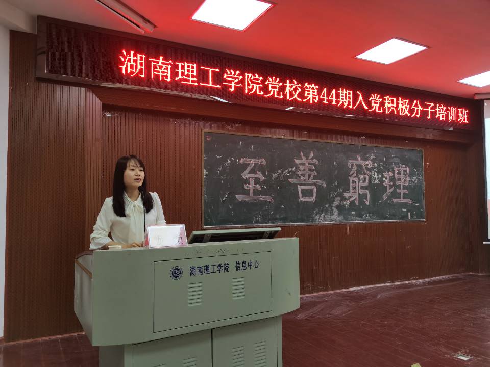 5月6日12:30,由信息公司承办的校第44期入党积极分子培训班第三讲在6栋学术报告厅顺利举行。本次党课由校党委组织部专职组织员龙颜主讲,院员工党支部书记王学鹏主持,全体入党积极分子参加。