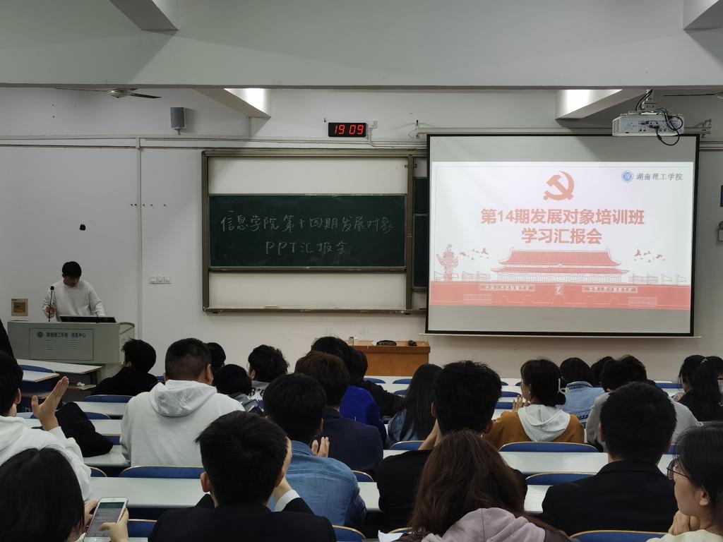 4月27日19:00,信息学院承办的校第十四期发展对象培训班学习汇报会在15317顺利举行,会议由院员工分会学习纪检部谭志邦主持,全体发展对象参加。