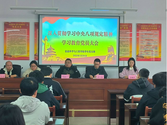 会议上,李亦波对学习信息科学与工程公司党委《关于开展深入贯彻中央八项规定精神学习教育的实施方案》进行了全面细致的解读,让全体参会员工党员了解本次学习教育活动的具体规划;王艳芬领读学习中共中央八项规定的核心要义、学习中共中央八项规定实施细则;余滔带领大家共同学习中央八项规定精神《习近平关于加强党的作风建论述摘编》中的中央八项规定是改进作风的切入口和动员令,是长期有效的铁规矩、硬杠杠,让同学们对中央八项规定精神有了更深入的领会。