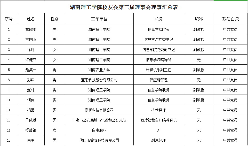 tyc539太阳集团员工会第三届理事会理事汇总表