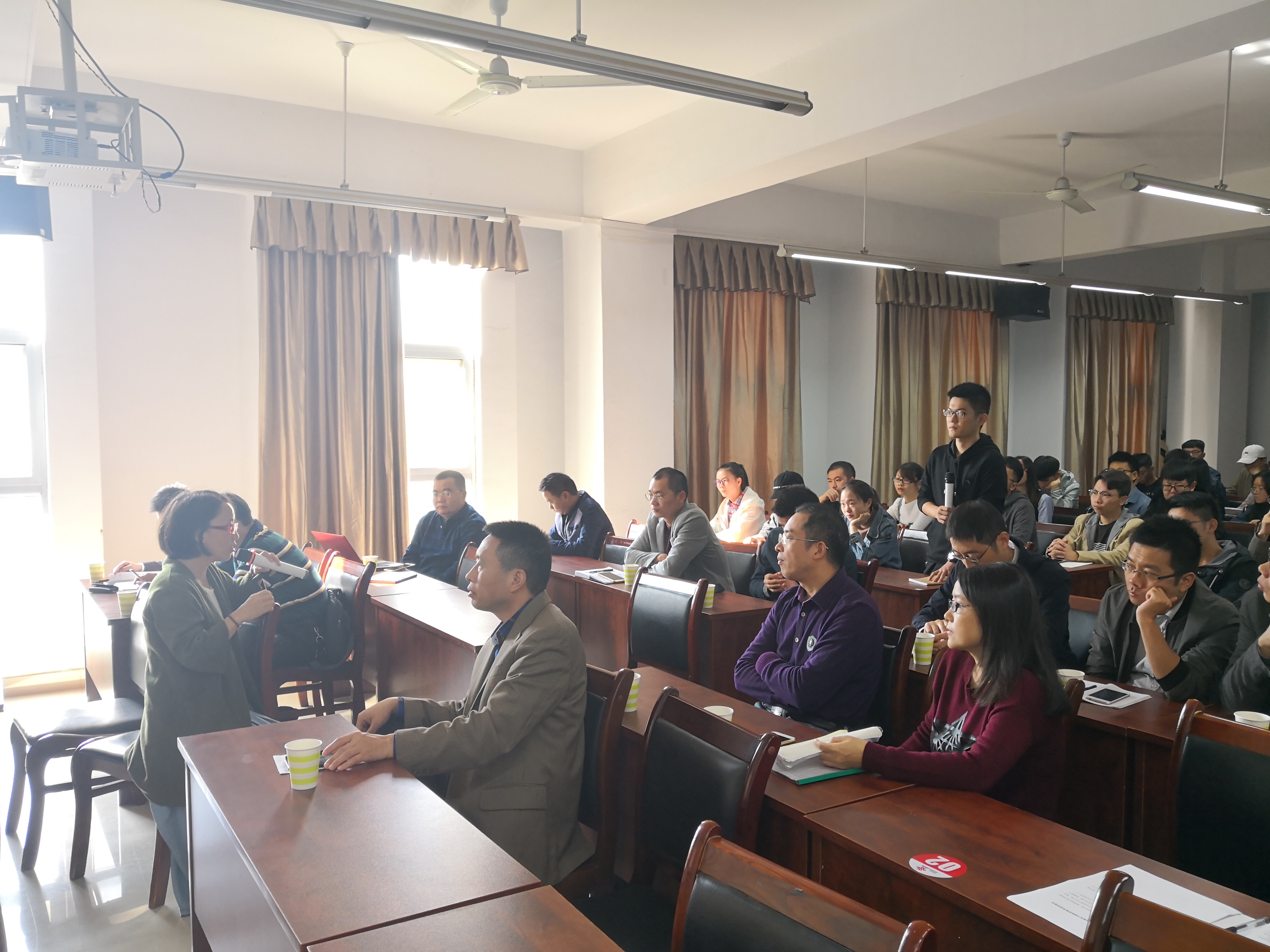 李军教授就研究生在学习过程中的困惑提出几点建议:一是能够达到复现代码的水平,这样能深刻的理解所学论文的思路;二是在所学论文的基础上进行简单改进;三是在理解水平及科研能力达到一定水平时可进行较大程度的创新;四是最终实现创新成果系统化。最后,李军教授与现场师生进行了交流互动,解答了同学们的疑问。