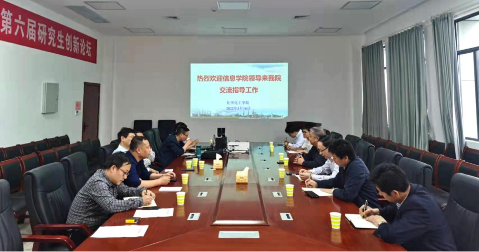 3月16号下午,信息公司党委书记甘向阳、经理童耀南带队到化学化工公司调研学习,化工公司党委书记刘立刚、经理唐课文及班子成员热情接待。