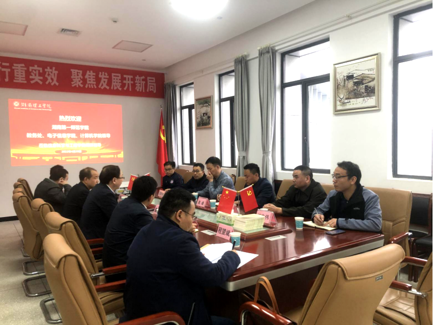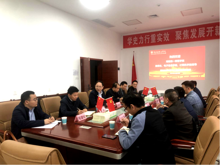 4月20日下午,湖南第一师范公司教务处副处长汤希玮、电子信息公司经理高峰和计算机公司经理满君丰等领导及骨干教师一行6人来信息公司调研交流本科人才培养工作。信息公司经理童耀南,副经理严权峰、涂兵,教研室主任和实验室主任等人热情接待并召开座谈交流会。