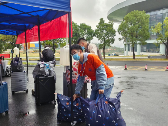 10月8日上午,信息公司全体领导、辅导员、2022级新生班主任及班主任助理在17栋教学楼一楼大厅迎接来自全国各地的新生。