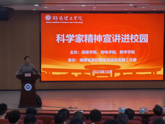 10月17日15:00,由信息公司、物电公司、数学公司联合主办、湖南省高校“劳动立方”辅导员综合发展工作室承办的《弘扬科学家精神,争当新时代先锋》报告会在17118举行,报告会由公司党委副书记张国云主持,报告人为中国科公司大学教授、中国科公司半导体研究所研究员余金中,中国科公司王杏华研究员陪同出席,参会人员有信息公司、物电公司、数学公司师生共380余人。