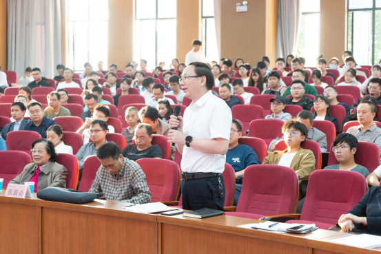 余金中结合亲身经历介绍如何带研究生和写作科学论文的方法,强调要针对新时期研究生的特点,引导研究生选定研究课题、作好实验与分析、写好论文,同时强调要深刻认识科教融合的重要性。他呼吁在场师生要传承老一辈科学家精神,肩负起新时代赋予的历史使命,在这个充满机遇与挑战的时代里,不断学习、不断进取,努力成为具有创新精神和创新能力的新时代先锋。