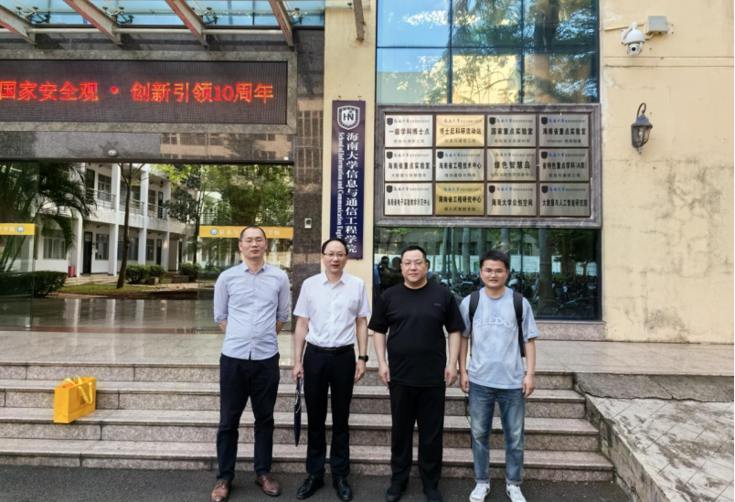 在海南大学网络空间安全公司(密码公司)调研交流会上,公司书记陈广锐教授、副经理张殿教授对公司的到来表示欢迎,并结合宣传片,对公司的发展历史、博士学位点建设、地区发展战略协同、重点科研平台、团队岗位划分等各项工作情况进行了详细阐述。童耀南经理赞赏海南大学近年取得了极大的发展进步,地域优势明显,网络空间公司的发展历史与公司有很多相似之处,改革成功的经验值得借鉴。此外,双方对科研分配方案等团队建设问题展开了深入讨论,并期望海南大学网络空间安全公司专家今后能够莅临公司指导交流。随后,公司一行对网络空间安全公司和信息与通信工程公司学科实验室进行了参观学习。