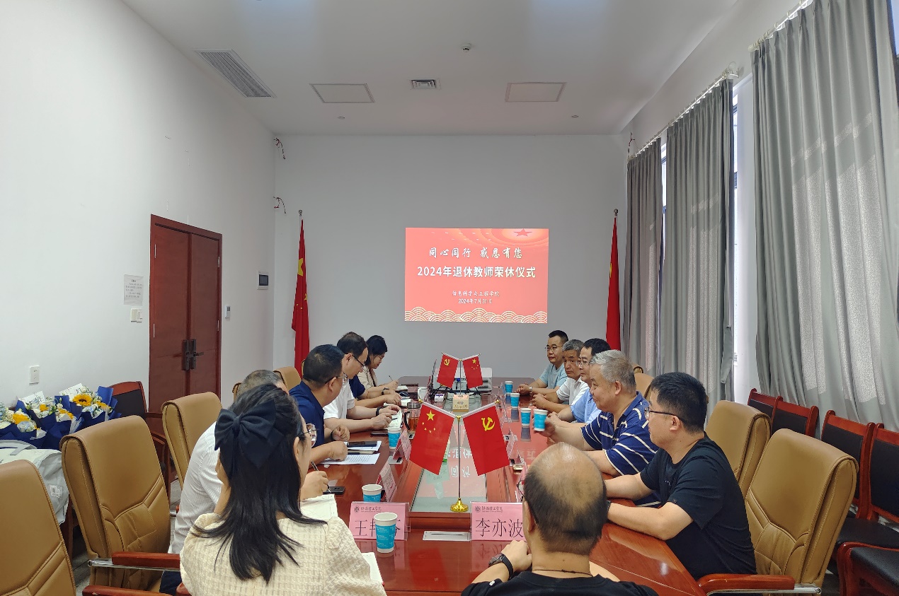 岁月染芳华,桃李育芬芳。为表达对公司荣休教师多年来爱岗敬业、辛勤耕耘的致敬与感恩之情,7月 31日下午,信息公司在17517会议室为郭观七、甘向阳和吴柯三位老师举行荣休仪式。现场气氛温馨而又感人,公司领导班子成员、相关教研室负责人、分工会委员、行政人员及教师代表参加,仪式由公司党委副书记付亚子主持。