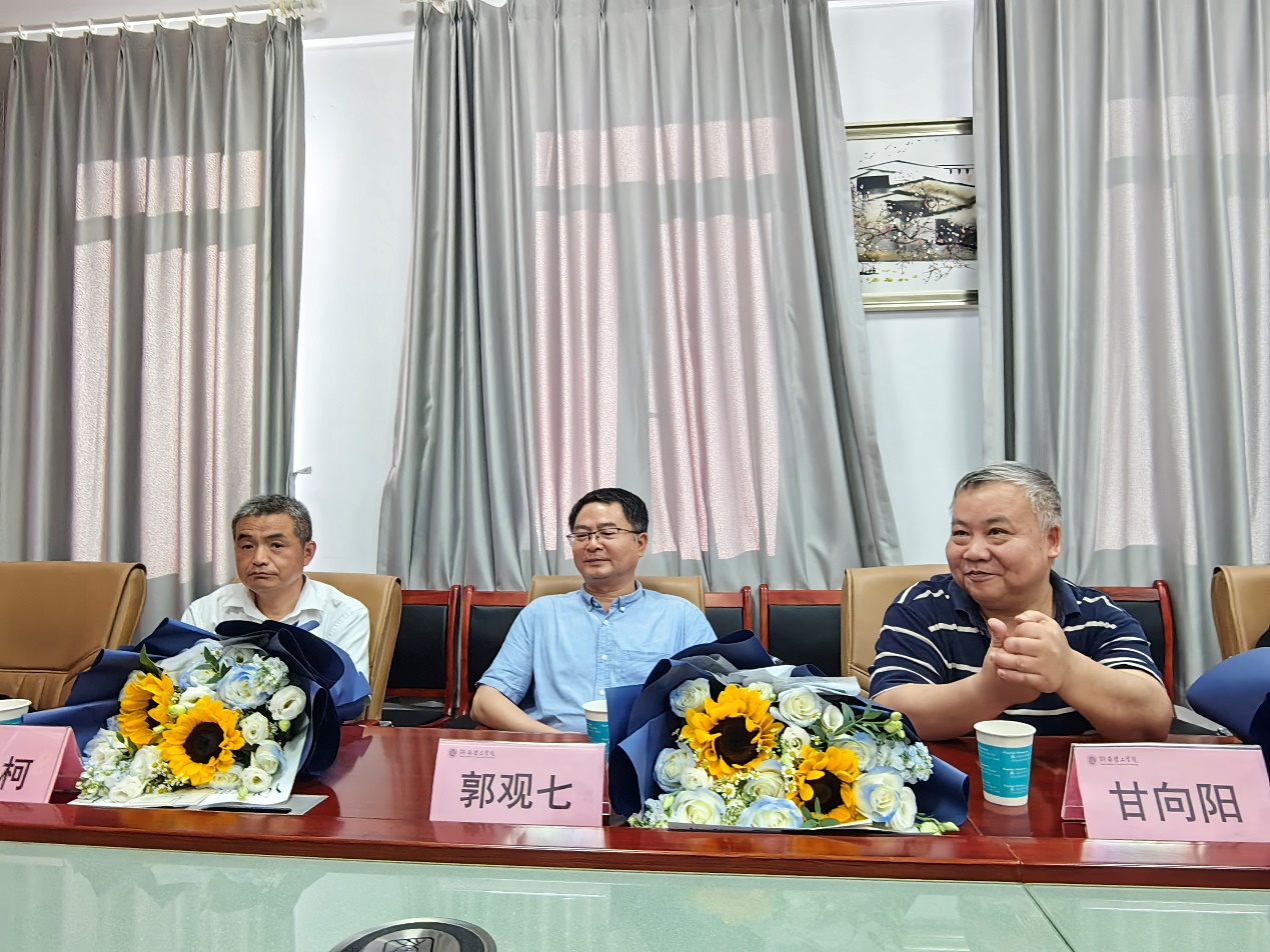 接着,青年教师为三位荣休教师献上鲜花。随后,郭观七、吴柯和甘向阳三位老师分别发表了感言,回顾了自己在信息公司的难忘岁月,话语中饱含着对育人事业的忠诚与热爱,深蕴着对公司发展的期望。