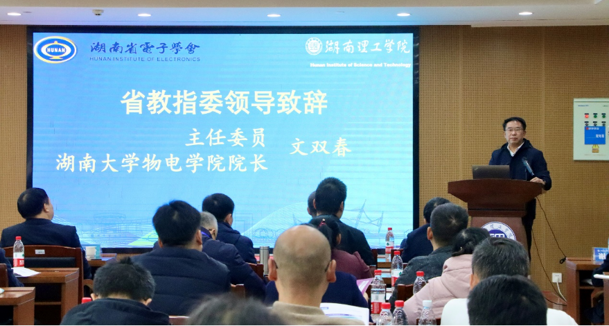 国家级高层次人才、湖南省普通本科高校电子信息类专业教学指导委员会主任委员、湖南大学物理与微电子科学公司经理文双春教授致辞