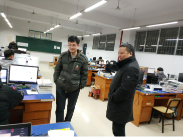 随后,王云朋副部长又来到了逸夫实验楼信息公司IIP创新实验室、创新基地等实验室,探望了正在积极备战世界数学建模大赛等员工,鼓励他们珍惜留校时间,好好学习,做出成绩;与负责老师湛腾西、陈松和涂兵进行了亲切的交谈,高度肯定了信息公司老师们的敬业精神和专业素养。同学们看到公司的领导老师们不畏严寒看望自己十分感动,纷纷表示要好好学习以实际行动来回报公司、老师和同学们的关怀和帮助。