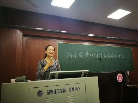 2017年9月11日上午,信息公司举行毕业生就业指导暨中国联通湖南分公司2018年校园招聘宣讲会。会议由信息公司学工办主任张超主持,到场嘉宾有信息公司党总支副总支书记徐丹,中国联通岳阳分公司人力资源部经理舒娟、招聘负责人戴瑶、刘茉茉。