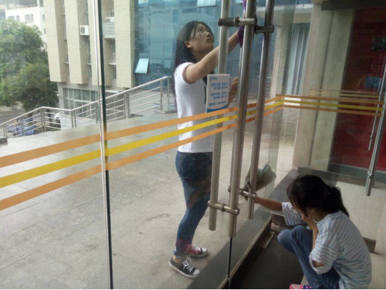 本次的清洁工作主要在16栋教学楼进行,6层楼的长廊与卫生死角显然不是轻微的工作量,每层楼的小组人员都使着十二分的力气:扫地、拖地、擦洗玻璃甚至是去除墙上的积灰都考验着大家的耐心与细心。
