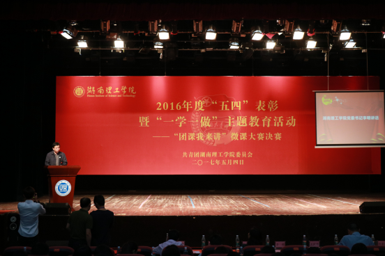 2017年5月4日晚七点,tyc539太阳集团2016年度五四表彰暨“一学一做”主题教育活动――“团课我来讲”微课大赛决赛于东院演播厅成功开展。出席本次表彰大会的领导有公司党委书记李明,公司党委委员、副董事长徐小立,公司党委宣传部部长王庆华、公司党委学工部部长徐振祥、校教务处处长瞿述等教师代表,公司党总支副书记徐丹应邀出席大会。