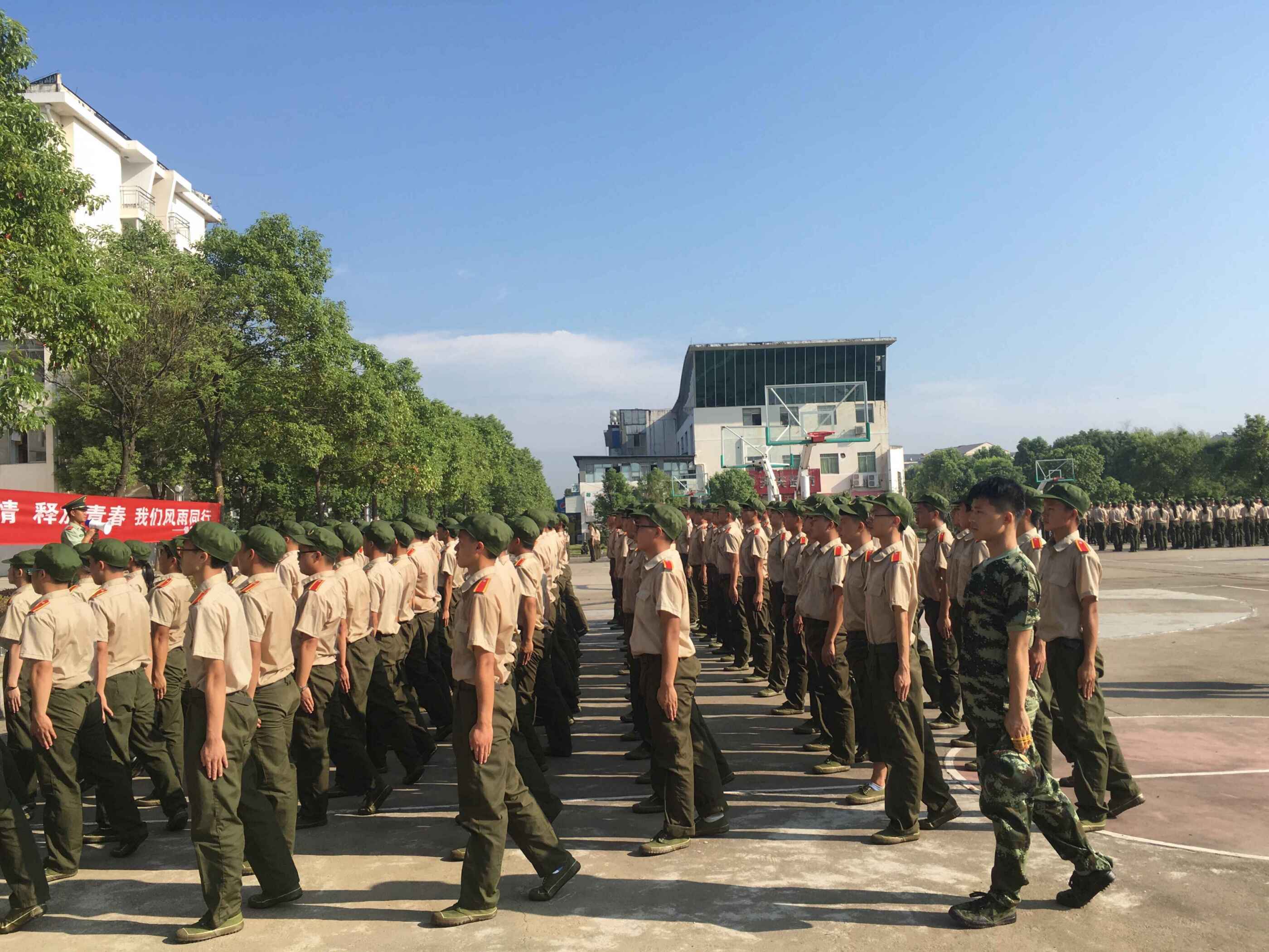 训练场地上,新生们整齐有序的训练着各个动作。踏步,齐步走随处可见。