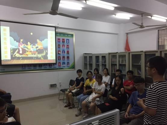 在自由提问环节,针对2018级新同学提出的大学的学习方法,如何正确处理学习与工作的关系,如何选择适合自己的员工社团等问题,特别是围绕如何考研这一话题进行了深入沟通和交流,学长学姐们都耐心细致的做出解答。活动最后,公司特色成长辅导室的指导老师为每一位参加活动的同学分发了月饼,在浓厚的中秋氛围中本次活动圆满结束。