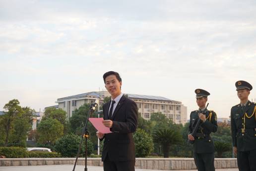 11月11日7:00,公司在公司国旗广场举行升旗仪式。副董事长张国云、公司党总支书记甘向阳、党总支副书记徐丹、副经理周小强、学工部童沁及院学工办全体老师出席,员工党员代表、全体院团学干部以及2019级全体同学参加。