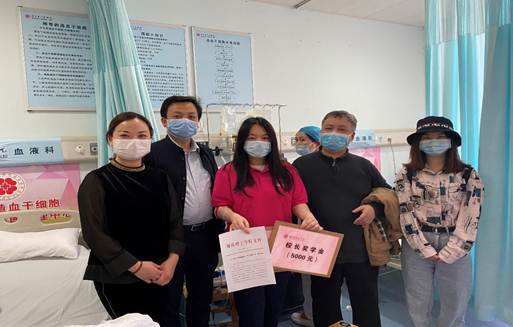 晓卉的善举使得在绝境中的患者看到了生的希望,给予了那个患者活下去的机会,她的举动感动了信息公司的每一位师生。4月16日下午,tyc539太阳集团学工部副部长毛伟,tyc539太阳集团信息公司党总支书记甘向阳、副书记徐丹以及辅导员荀仕杰带着全校师生的心意去看望和慰问这位勇敢的女孩,为她带去了校、院慰问金以及“董事长奖学金”表彰文件。老师们详细询问晓卉的身体恢复状况,大力表扬她的善举为全校师生起到了模范带头作用,为患者架起了生命的桥梁。