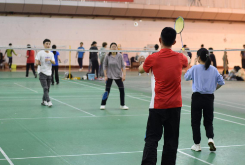 正式训练前,三位教练分别为参赛选手们详细地解说比赛规则以及相关注意事项。随着教练一声哨响,参赛师生们各自挑选队友,开始对局。赛场上选手们热情高涨,手握羽毛球拍跃跃欲试,每个人目光坚定,紧紧地盯着对手。当羽毛球脱手那一刻,“战争”正式打响。