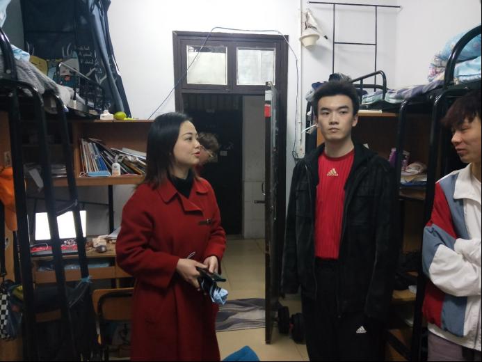 3月18日20:00,信息公司党委副书记徐丹带领全体学工办老师,深入寝室看望员工。