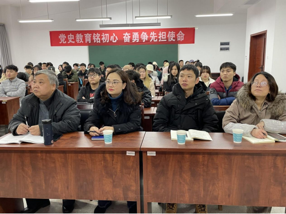 在观看视频的过程中,老师和同学们聚精会神,牢记“让我们更加紧密的团结在以习近平同志为核心的党中央周围,高举旗帜、牢记嘱托,埋头苦干、勇毅前行,全面落实‘三高四新’战略定位和使命任务,为全面建成富强民主文明和谐美丽的社会主义现代化新湖南而努力奋斗”的会议精神。
