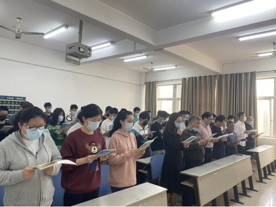 今天是五四青年节,也是本期朗读活动的第一场,公司党委书记甘向阳、经理童耀南、公司党委副书记徐丹、教授代表郭观七、教授代表湛腾西,以及辅导员老师周煊阳、余滔、柳祎璇、李亦波、王勤莅临现场,与员工一起朗读经典篇目《祖国啊,我亲爱的祖国》。