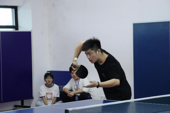 信息公司乒乓球爱好者陈松老师前来指导员工