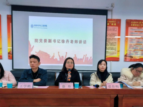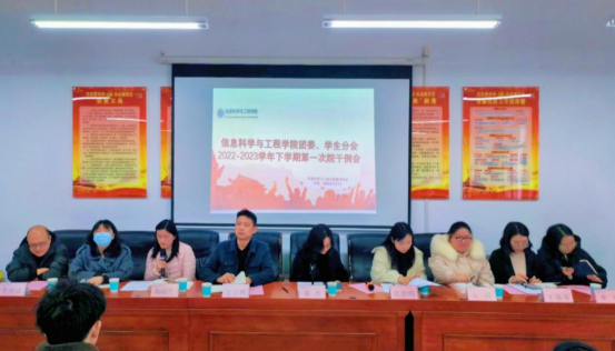 3月1日12:00,信息公司于17503召开2022-2023学年下学期第一次团学例会。公司党委副书记徐丹,团委副书记张佳明以及全体辅导员出席。会议由张佳明主持,全体团学干部、干事参会。