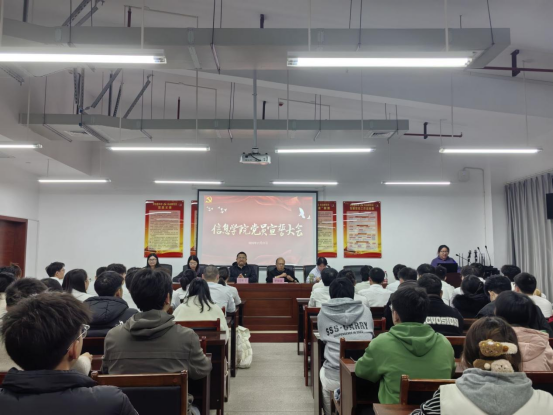 宣誓结束后,新党员代表刘熠辉从党的先进性出发,向全体预备党员号召要将共产党人的理想信念转化为不断追求的动力,紧跟党走,努力学习,保持先进创新;正式党员代表周俊以“砥砺奋进新时代”为主题,结合自身经历号召全体党员以身作则,勤奋学习,追求卓越,做好榜样,服务他人,在砥砺奋进中书写青春华章。