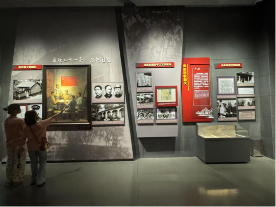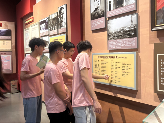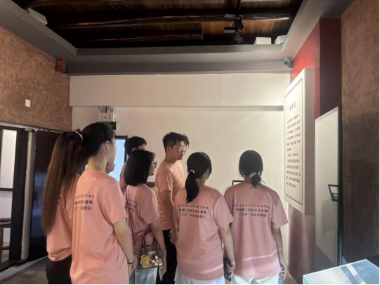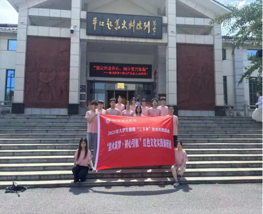 上午,实践团队踏入平江起义纪念馆。1928年7月22日,彭德怀、滕代远等革命先辈在此发动平江起义,创建中国工农红军第五军,为湘鄂赣边界武装斗争点燃了燎原之火。馆内,泛黄的作战手稿、锈迹斑驳的枪械、布满弹痕的军旗,一件件文物无声诉说着那段烽火岁月。当看到起义战士简陋的衣物与粗糙的被褥时,成员们真切体会到“革命理想高于天”的深刻内涵。平江起义所孕育的斗争精神,不仅为革命根据地建设奠定根基,更成为照亮中国革命道路的永恒灯塔。