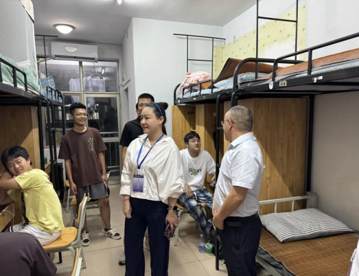 走访过程中,领导老师们仔细查看宿舍居住环境,围绕校园生活适应、饮食起居习惯等话题与新生亲切交谈,耐心倾听大家入学以来遇到的困难与疑问并及时解决问题。同时,老师们还从学习规划、安全防范、文明养成等方面为新生答疑解惑,叮嘱大家注意用电安全与财产安全。针对即将开展的军训,老师们特别强调相关注意事项,提醒大家调整好状态以饱满的精神接受军训,确保安全顺利完成军训任务。