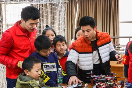 我们创办了“n +1”精品课堂。“n”指每周两次的学业辅导等n项内容。“1”指固定一个主题,就是“小科学迷”课堂。课堂内,我们通过“扎不破的塑料袋”等“实验小发现”来激发孩子们的探索欲望。在课堂外,我们还会邀请他们到我们的国家级创新基地参观学习,体验无人机等多项实操。