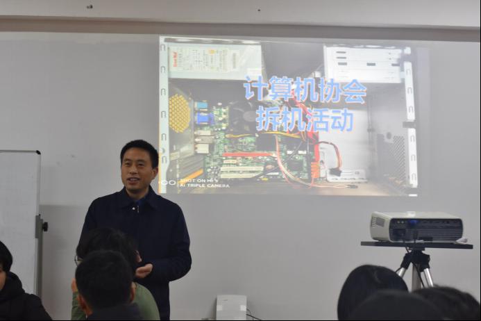 张国云对本次拆机活动做指导讲话。他提出“学习要深入,不要拘于表面”、“不要害怕犯错,要大胆尝试,多与老师交流”、“养成良好的使用计算机习惯”、“要有信息安全意识,合理利用平台”等四点建议。并通过简述中国计算机的发展,指出同学应注重全面意识、创新意识和版权意识。希望同学们好好利用此次活动,将理论与实践结合,在活动中积极动手、主动思考、提升专业素养。