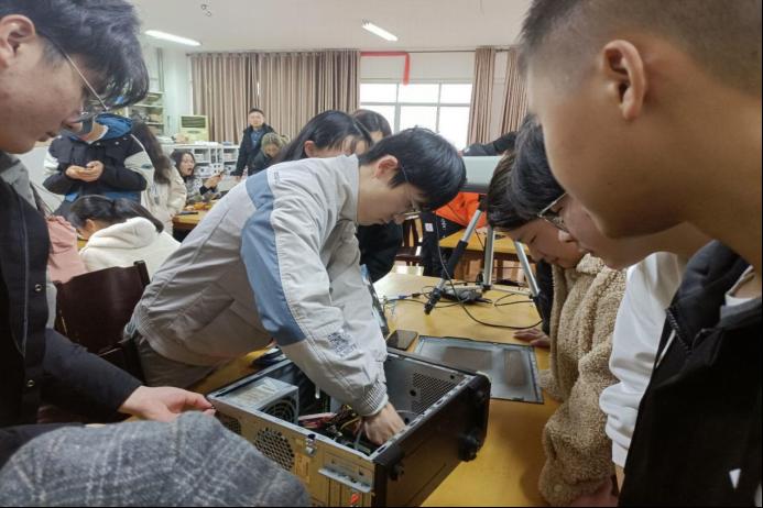 协会技术骨干姜彦昕分模块介绍了计算机主机的组成部分,带着同学们边拆开主机各零部件,边讲解每个零部件的作用,同时也细致分享了实践操作中的注意事项。