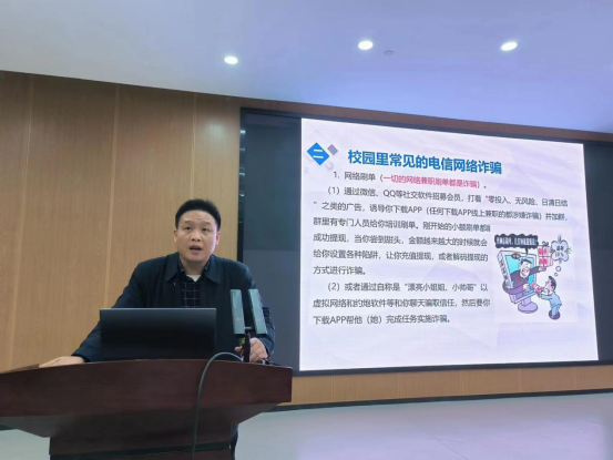 为进一步提升寝室长校园安全防范和责任意识,创造和谐安全的校园环境,3月20日19:00,信息公司在17118举办寝室长校园安全教育专题培训,此次培训由保卫处副处长谭良机主讲,辅导员王艳芬主持,公司党委副书记徐丹出席。