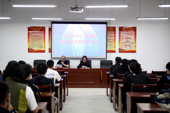 培训会上,徐丹、李亦波通过对《中华人民共和国传染病防治法》、《湖南省人民代表大会常务委员会关于科学精准及时有效做好全省新冠肺炎疫情防控工作的决定(节选)》、《湖南省人民代表大会常务委员会关于科学精准及时有效做好全省新冠肺炎疫情防控工作的决定(节选)》、《教育部办公厅关于员工疫情防控期间学习生活健康指南的通知》、《高等公司新冠肺炎疫情防控技术方案(第五版)》、《公民防疫基本行为准则》等文件的解读,向同学们传达了疫情防控的要求与注意事项,旨在加深同学们法律法规的认识,提高疫情防控意识,加强疫情防控期间的员工管理。